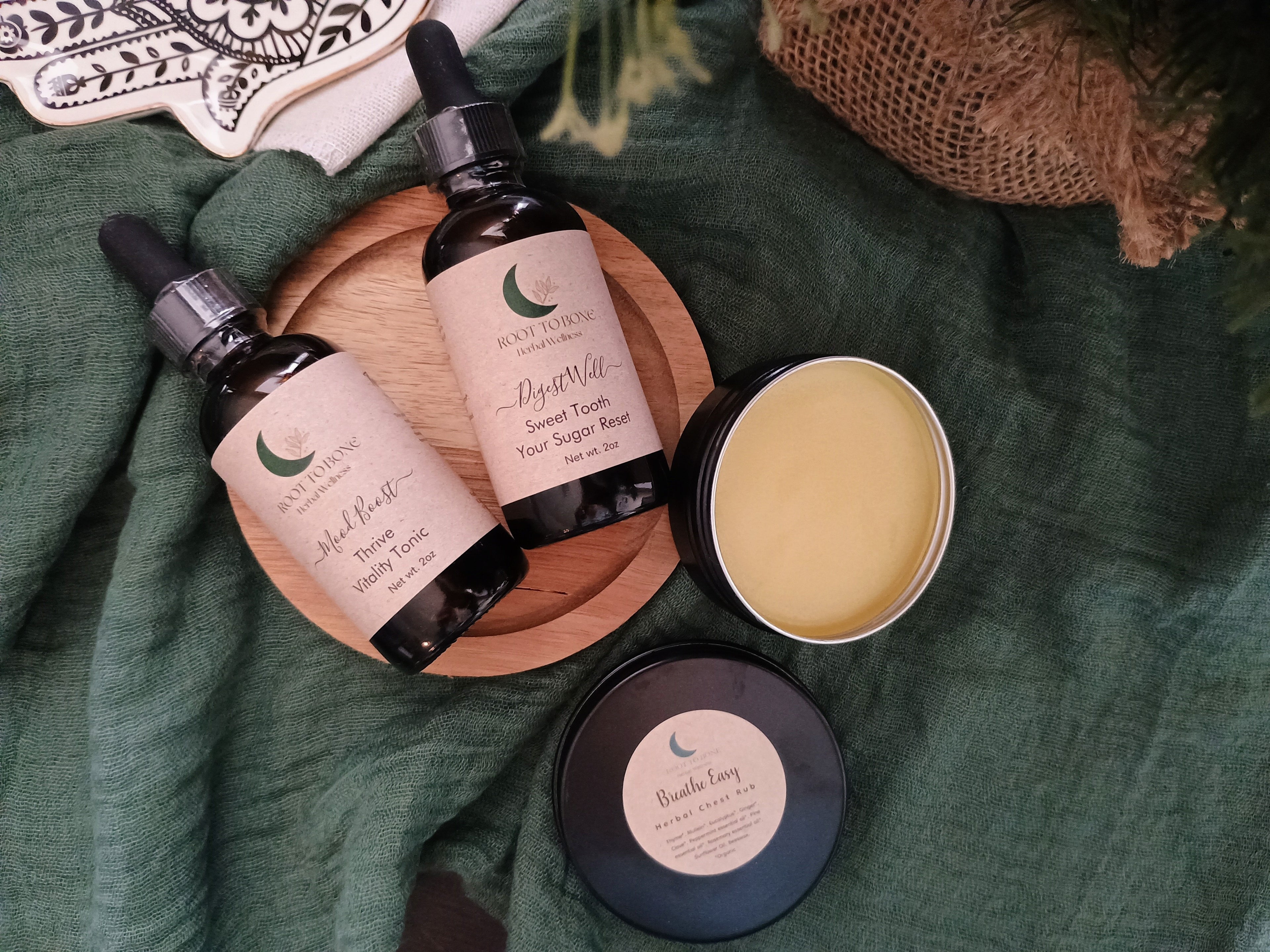 Root to Bone Herbal Wellness was born from a desire to reconnect with the wisdom of plants and the quiet healing of ritual. Each creation blends ancestral knowledge, earth's medicine, and a deep respect for balance. From the soil to the soul...