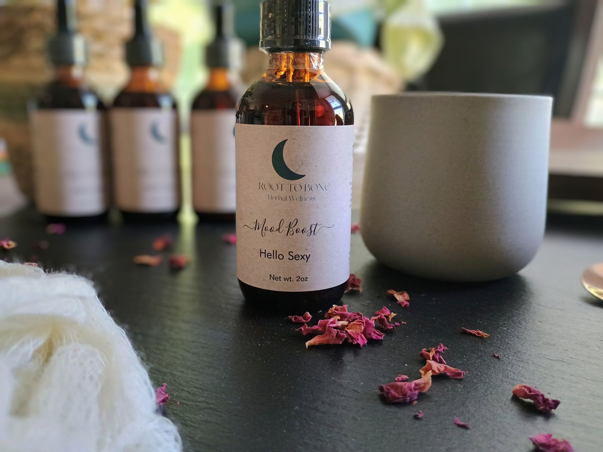 Hello Sexy is our herbal blend crafted to spark energy and inspire connection. Feeling burnt out, overworked, or just plain meh? Hello Sexy is your herbal invitation back to pleasure, playfulness, and desire. This warm blend is crafted for those whose spark has dimmed due to fatigue, stress, or emotional overwhelm.